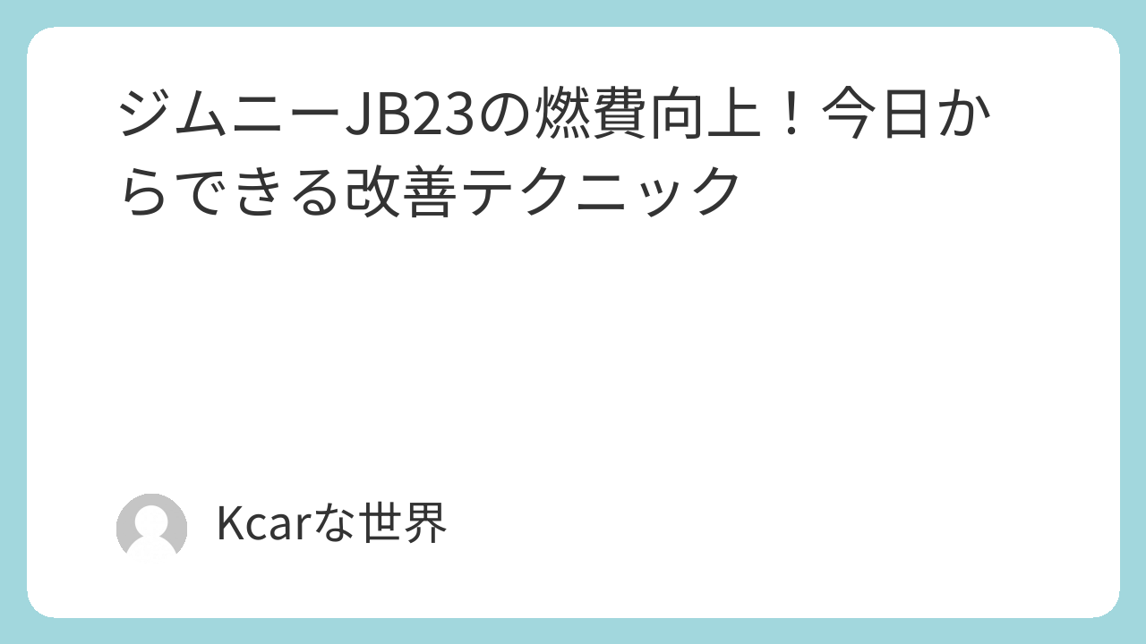 こんにちは、kcarです。長年ジムニーJB23に乗っているあなたは、そのJB23AT燃費の悪さに頭を抱えているかもしれません。通勤や日常の移動コストを考えると、「なんとかリッター12km/Lを安定させたい」「カスタムは好きだけど燃費は犠牲にしたくない」というのが本音ではないでしょうか。