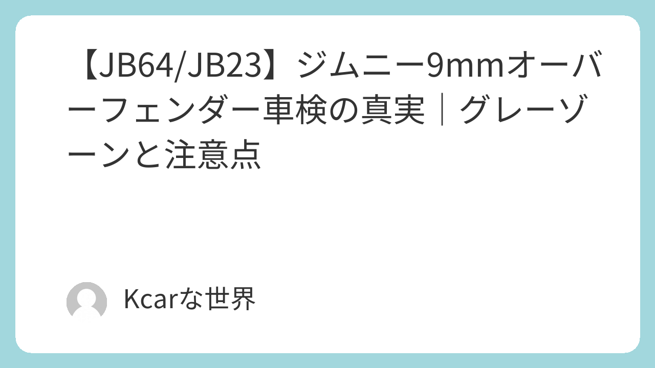 こんにちは、kcarです。ジムニーカスタムの中でも定番のオーバーフェンダーですが、「9mmなら車検OK」という話をよく聞きますよね。でも、「本当に大丈夫なの?」「軽自動車の幅を超えちゃうんじゃない?」と疑問に思っている方も多いのではないでしょうか。
